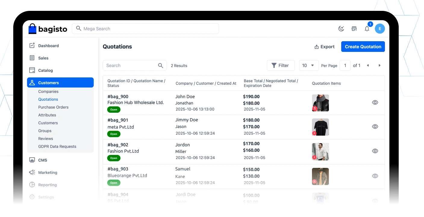 Bagisto B2B is an eCommerce platform designed to manage wholesale operations, including bulk orders, quotations, and company accounts efficiently.