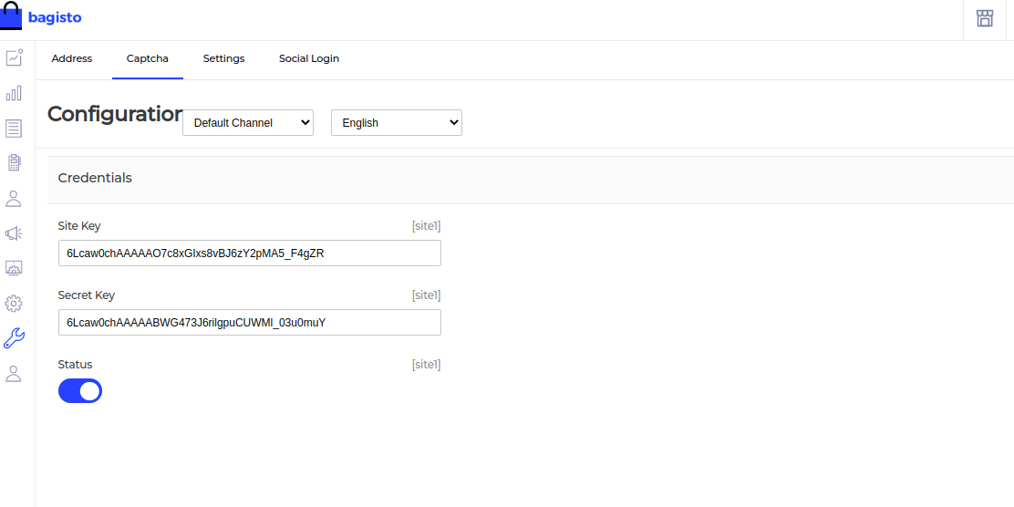 Here you need to enter the Site Key and Secret Key to successfully use this feature.
